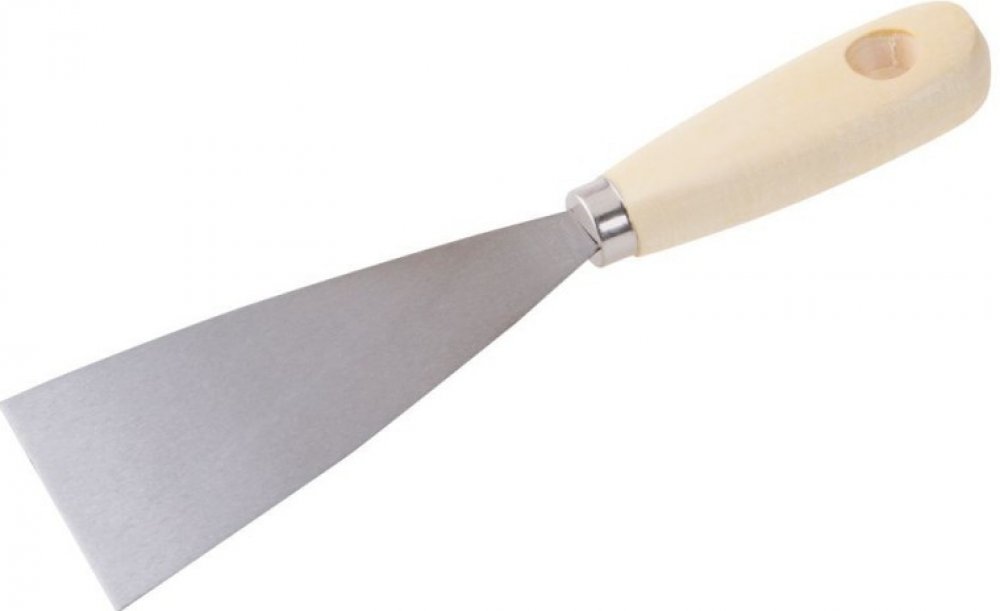 Špachtľa oceľová 60 s drevenou rúčkou. Je pracovné ručné náradie, ktorý sa používa obzvlášť v stavebníctve ale aj v domácnosti. Špachtľa, drevená rukoväť sa používa na nanášanie a roztieranie stavebné sadry, tmelov alebo na očistenie a odstránenie starých tmelov, malieb či tapiet. Vďaka trojuholníkovému tvaru sa materiál veľmi ľahko nanáša aj odstraňuje.