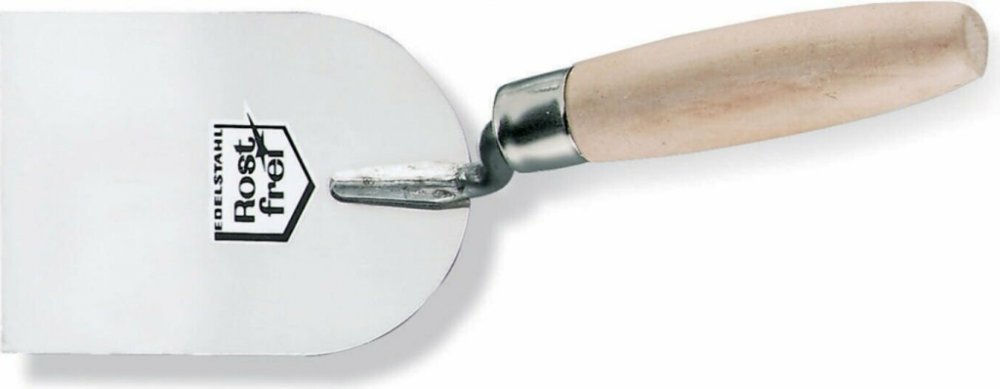Štukatérská nerezová špachtle s dřevěným držadlem.PoužitíNa štukatérské práce.Technické parametryMateriál: nerezová ocelRukojeť: dřevoŠířka: 80 mm