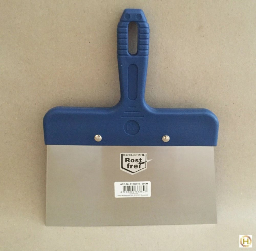 Stěrka pro tmelení, 200mm s plastovou rukojetí určená pro nanášení a vyrovnávání malt (tmel, omítka) při práci s různými povrchy: podlahy, stěny, stropy.