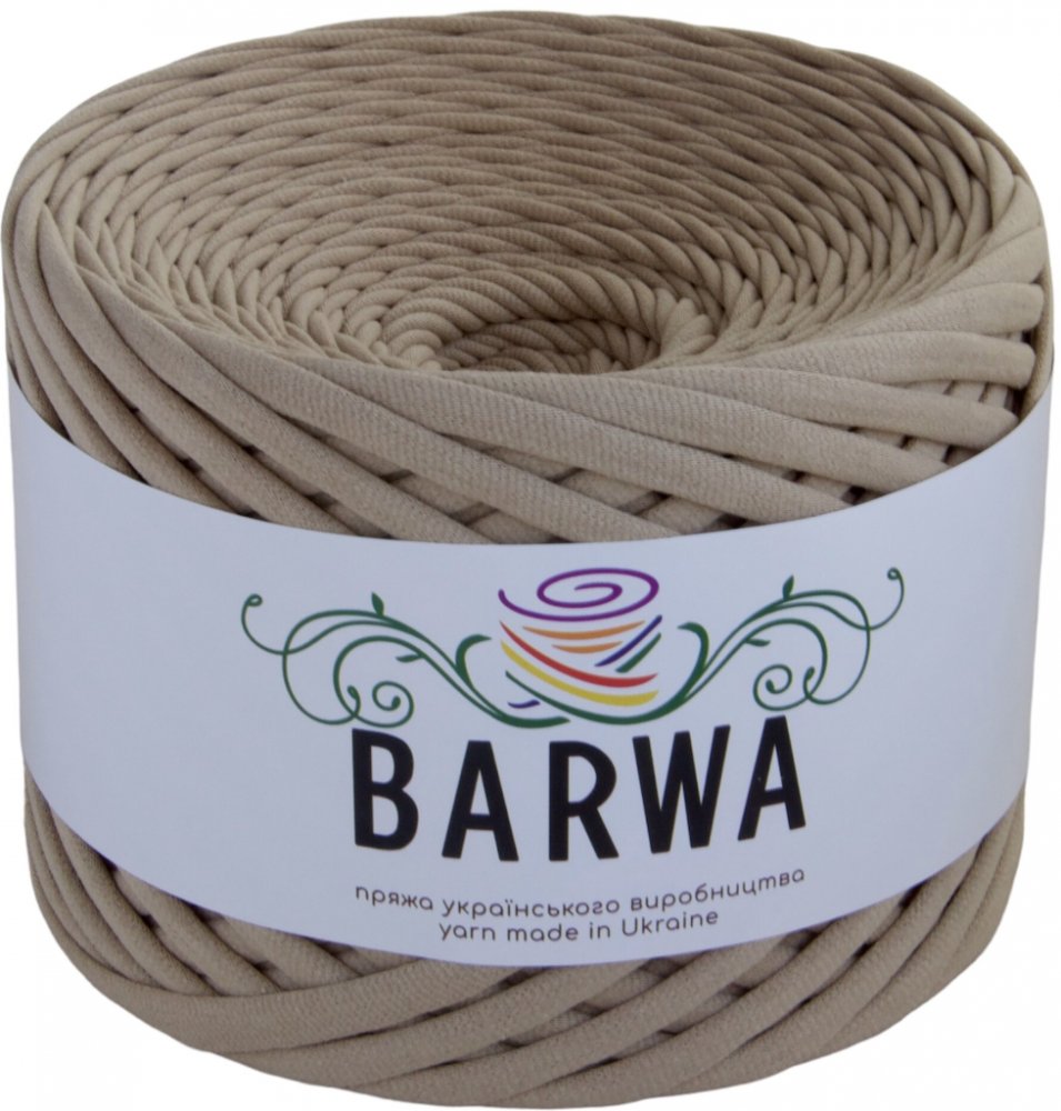 - Bavlněná textilní příze (T-Shirt Yarn) BARWA šířka 7-9 mm je nejuniverzálnější, tzv. standardní šířka příze. Je vhodná jak na pletení, tak na háčkování a lze ji použít i na makramé výrobky. Příze je vyrobena z vysoce kvalitních tureckých látek s pravidelným řezem proužků v celé délce.
