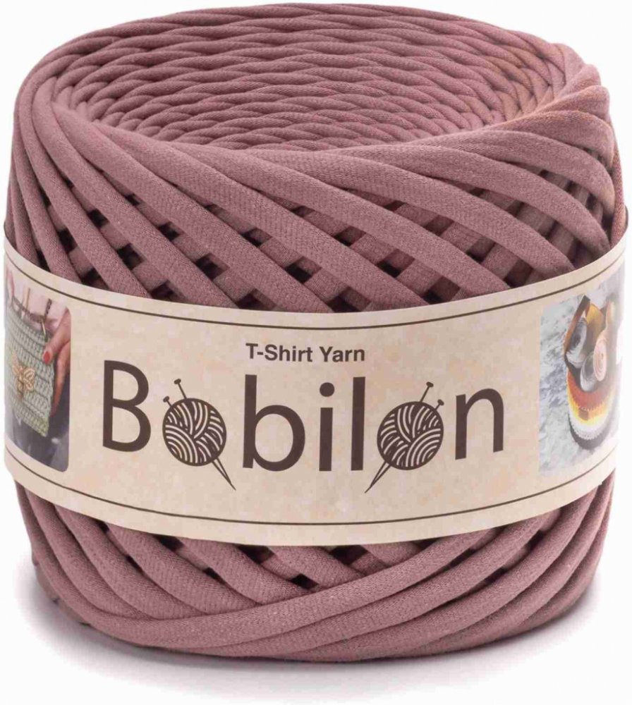 Bobilon medium je 100 % bavlněná textilní příze (T-Shirt Yarn), vyráběná z originálních kvalitních látek s pravidelným řezem proužků v celé délce (nejedná se o recyklát) bez uzlů, švů, dírek. Výsledný úplet je pravidelný a tvarově stálý.