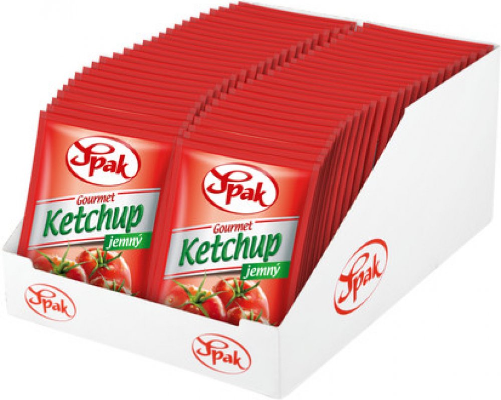 Cena se může v jednotlivých regionech lišit. -- Kečup vyroben z rajčat zrajících na jižním slunci,150 g rajčat na 100 g kečupu. 50ks kečupu v hygienickém jednorázovém balení. Kečup pochází z Číny z konce 17. století. Tehdy slovo ke-čjap/ketsiap označovalo směs nakládaných ryb a koření. Rajčata jako základ se začala používat až o sto let později. Jak se kečup rozšiřoval, rozšiřovaly se i ingredience, a tak se ve směsi nalezly také houby. Ořechy či ančovičky. O značce Spak – požitek pro pravé labužníky. Základ každého výrobku značky Spak je kvalitní zpracování, excelentní chuť a důraz i na ty nejmenší detaily. Značka je odrazem nejen chutných produktů, ale i nejlepších surovin, díky kterým může značka nabídnout bohatý sortiment nejen pro rodinu, ale i jednotlivce.
