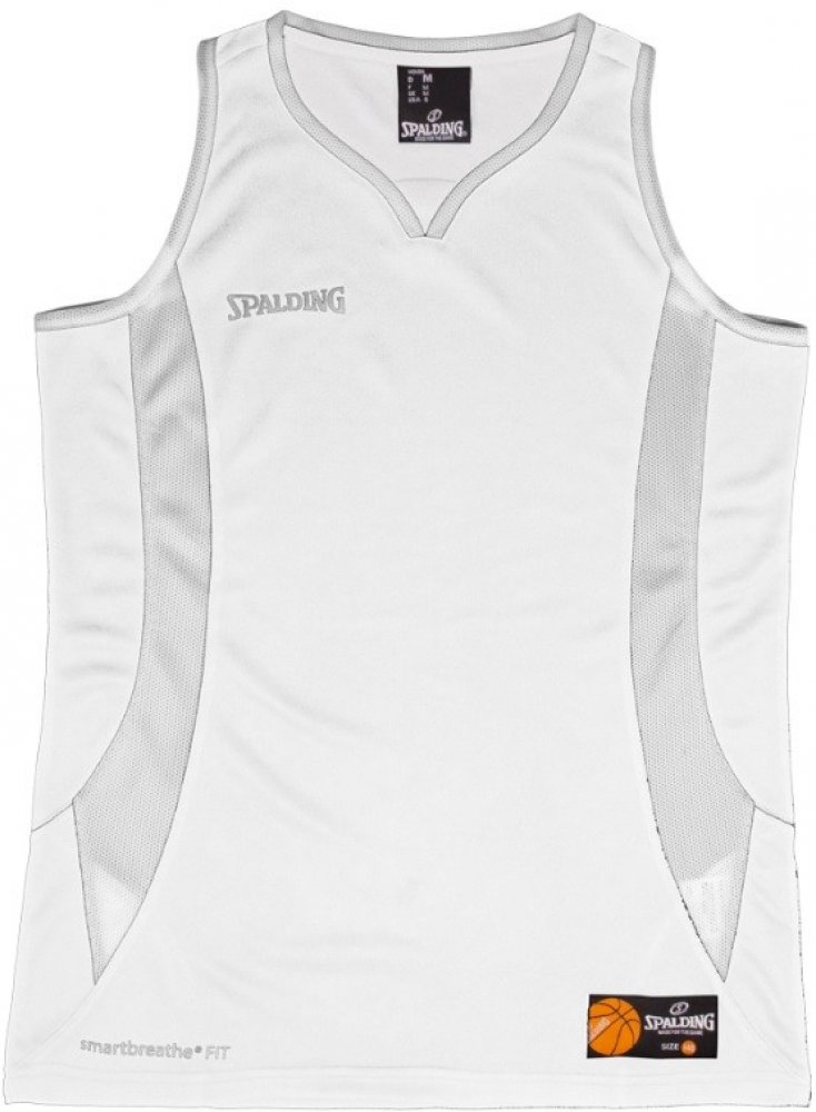 Dámský sportovní dres bez rukávů Spalding Jam je velmi příjemný na nošení, vyroben z kvalitního polyesteru. Kód 40221002-whitesilvergrey - Velikost S.