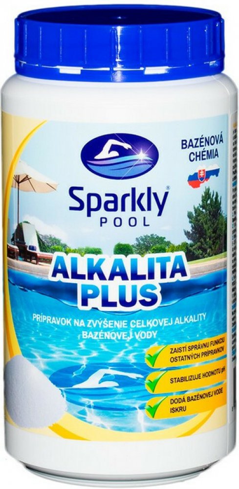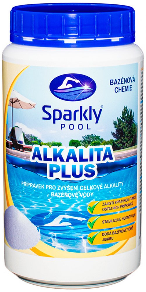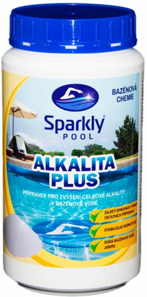 je beze zbytku rychlorozpustný přípravek ve formě prášku určený k zvýšení celkové alkality a stabilizaci hodnoty pH vody v bazénu se slanou i sladkou vodou, při používání bezchlorové i chlorové chemie např. bazénové tablety, vhodný do všech typů bazénů. Vaše bazénová voda může být vyčpělá, to znamená, že se hodnota alkality nenachází ve správném rozmezí 80 - 120 ppm. Tímto přípravkem zajistíte správnou hodnotu alkality a zabráníte tím náhlým změnám (kolísání) hodnoty pH. Tento přípravek také optimalizuje účinek všech přípravků k ošetřování bazénové vody a učiní ji jiskrnou. Hodnotu alkality vždy upravte před tím, než změříte a upravíte hodnotu pH a hodnoty ostatních používaných přípravků.