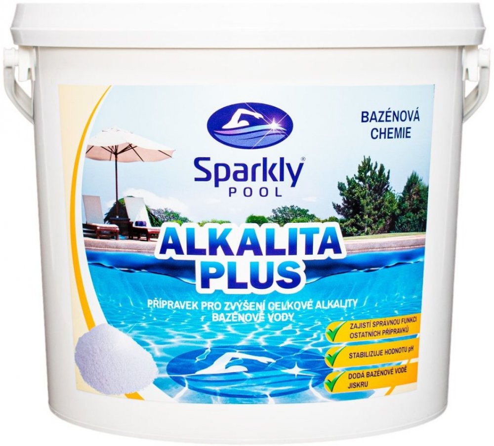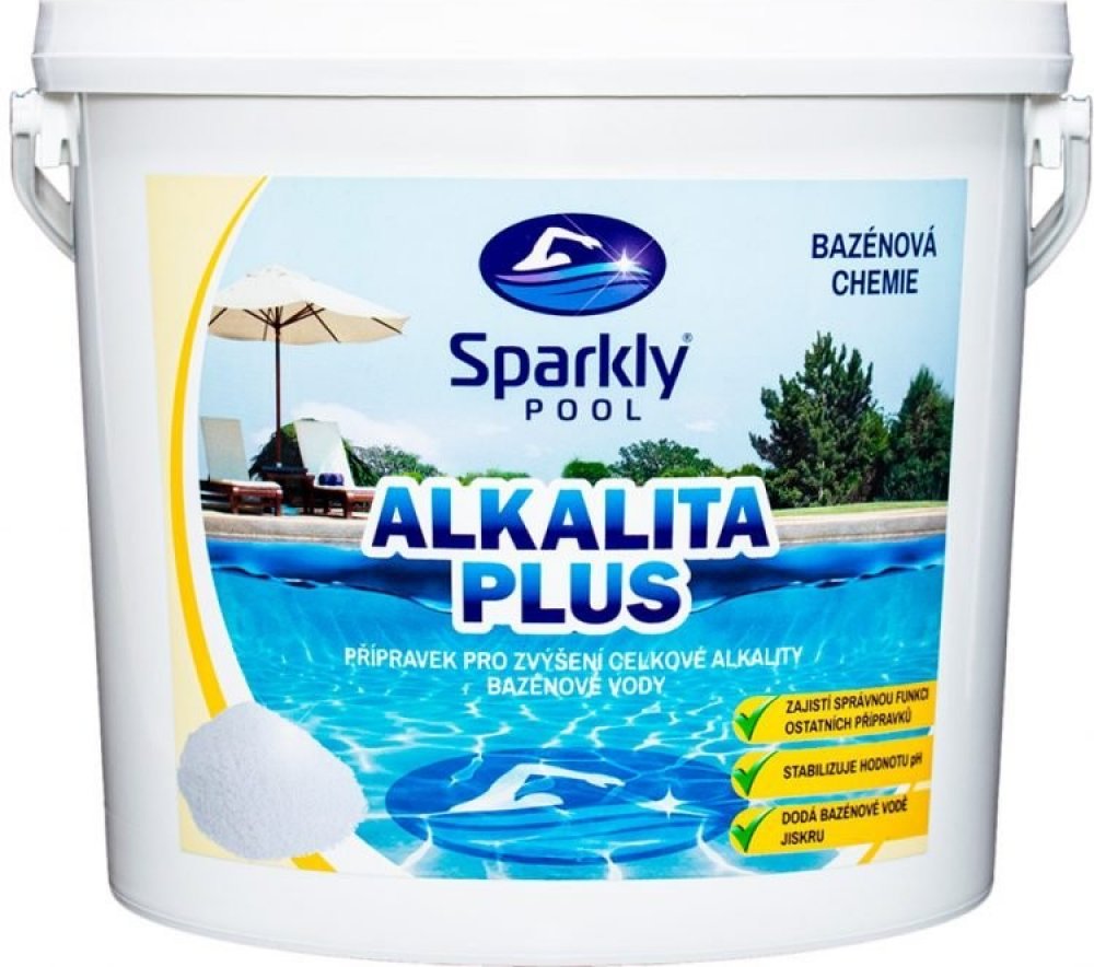 Bazénová chemie Sparkly POOL Alkalita plus je rychlorozpustný práškový přípravek, který spolehlivě zvyšuje celkovou alkalitu vody a zároveň pomáhá stabilizovat hodnotu pH. Pravidelné používání přispívá k optimálním podmínkám pro účinné působení ostatních bazénových přípravků. Je vhodný pro všechny typy bazénů, včetně těch se slanou i sladkou vodou, a je kompatibilní s chlorovou i bezchlorovou úpra...