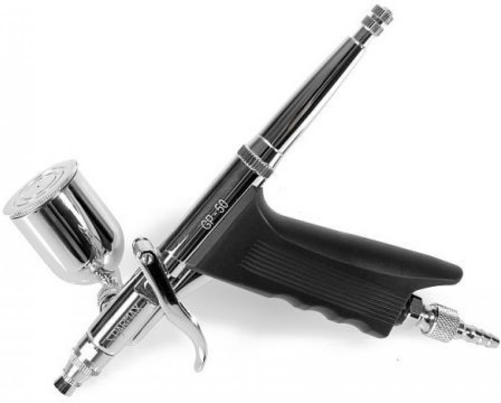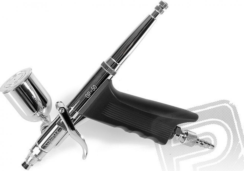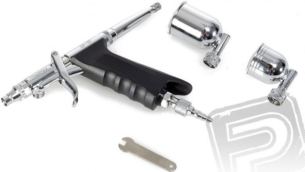 Airbrush pistole GP-50 (tryska 0,5 mm) Sparmax. Stříkací pistole a kompresory, Stříkací pistole. Stříkací pistole s anatomicky tvarovanou rukojetí určená pro lakování větších ploch. K dispozici výměnné boční nádobky pro 7 nebo 15 ml barvy. Závit pro hadici 1/8". Ideální pro body-art, modelářské práce apod.
