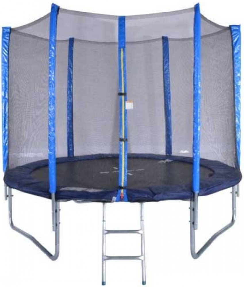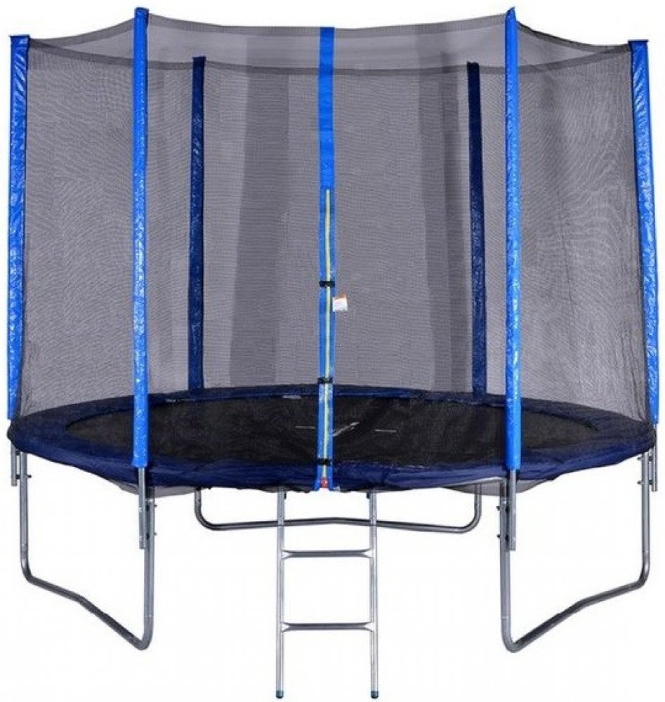 Trampolína s ochrannou sítí a schůdky, vhodná pro exteriérové využití, dlouhá životnost, snadná a rychlá montáž.