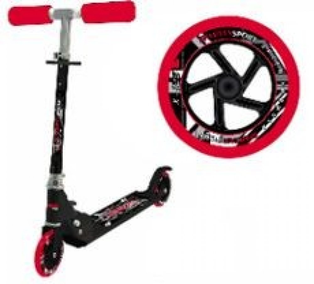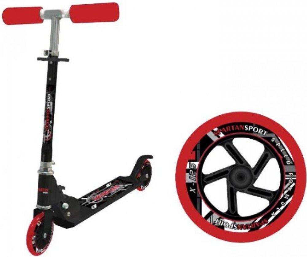 Skládací koloběžka SPARTAN Formule Super X125 v černo-červeném designu.