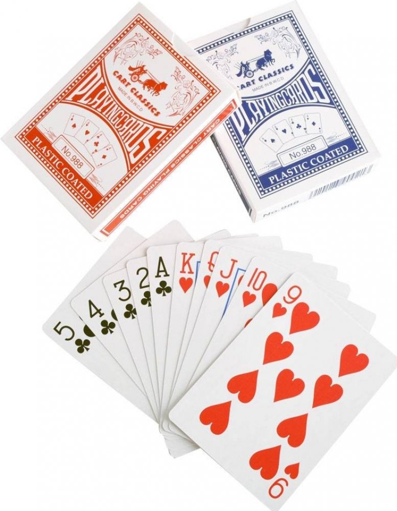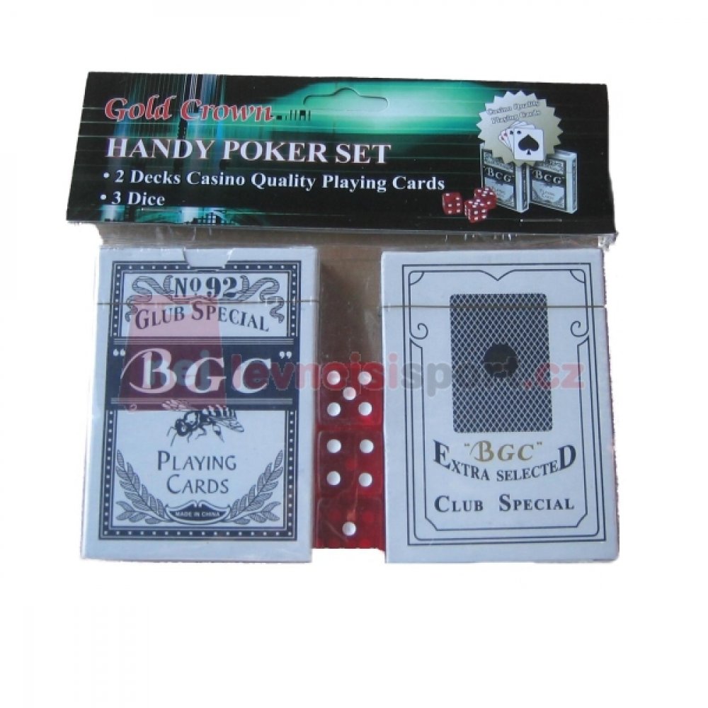 Poker Spartan Karty obsahují 2 sady kvalitních karet v červeném a modrém provedení. Jeden balíček obsahuje 54 karet včetně dvou Žolíků. Balíček karet je vhodný pro hraní všech běžných her, jako je Žolík, Kanasta, Prší apod. Technický popis: 2 sady karet v modrém a červeném provedení (dohromady 108 hracích karet)klasické provedenívhodné pro hraní všech běžných karetních her