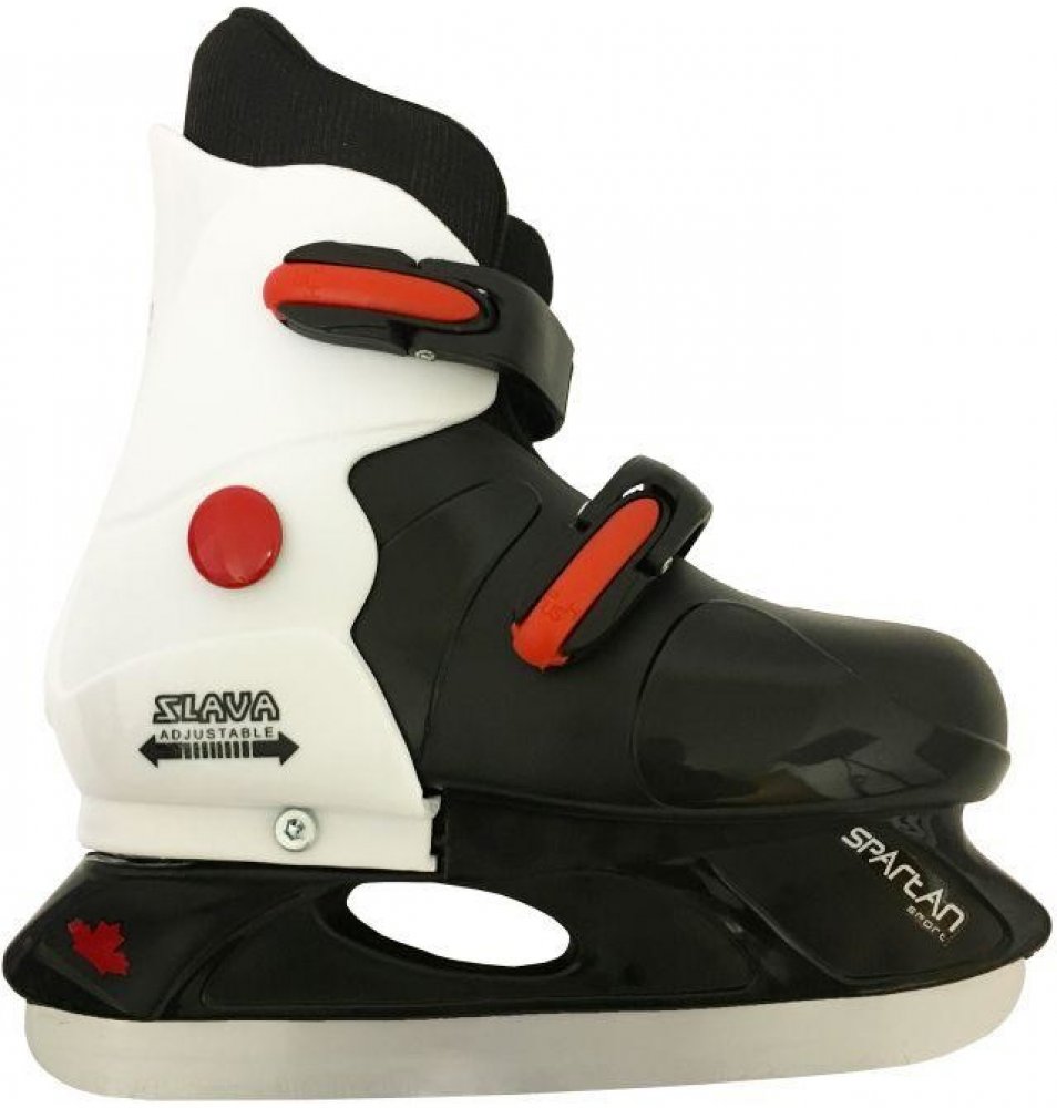 Hokejové zimní brusle SPARTAN Slava jsou v moderním a atraktivním designu vhodné pro rekreační i hokejové užití. SLAVA model je vhodný pro mladé chlapce oceňující styl a pohodlí. Nepochybnou výhodou je nastavitelná velikost, která pokryje hned 4 velikosti, tím pádem nemusíte svým dětem kupovat rok co rok nové brusle.