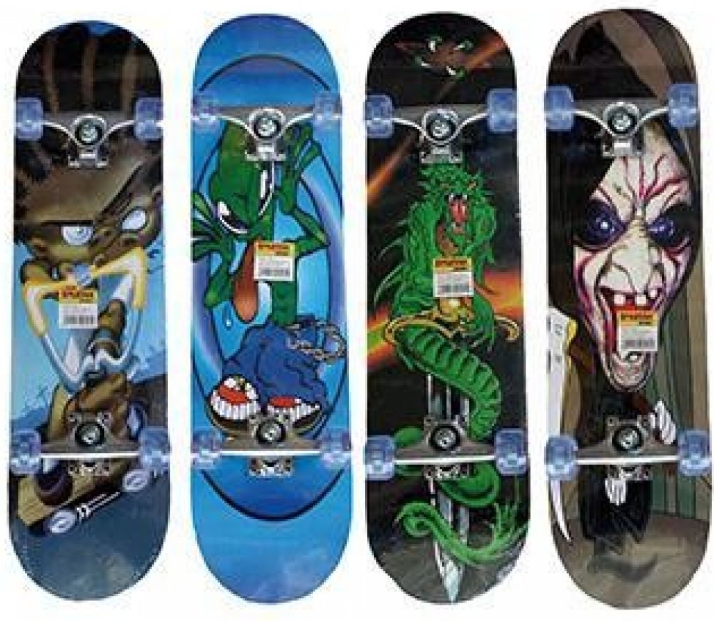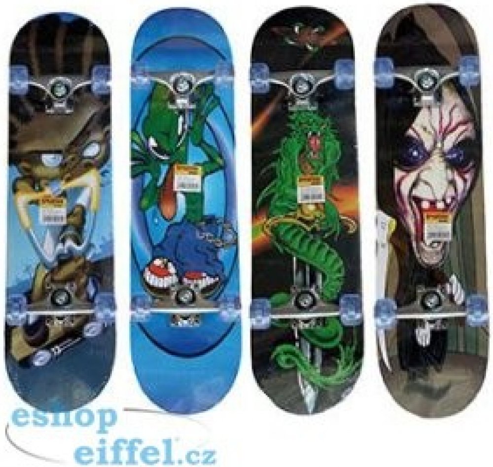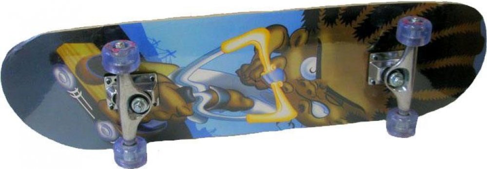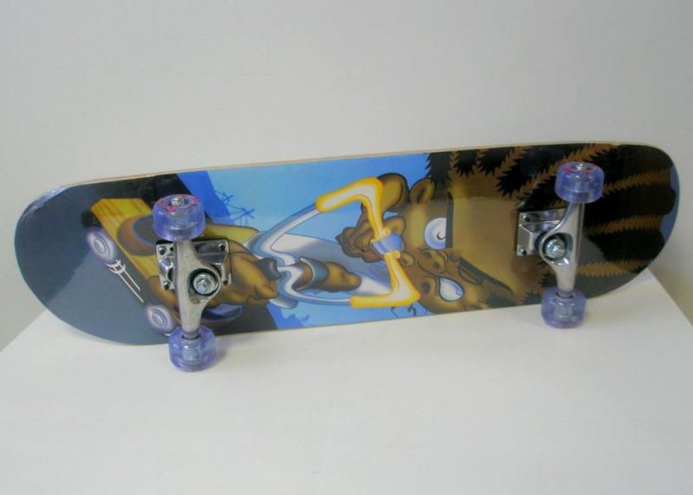 Tento skateboard je vybaven kvalitními ložisky ABEC 5 a kolečky o rozměrech 50 x 36 mm, které zaručují bezpečnou a pohodlnou jízdu. Deska je vyrobena z indonéského laminátu o síle 11 mm. Horní strana desky je opatřena protiskluzovým gripem, který zabraňuje sklouznutí. Barevný motiv dodáván dle aktuální skladové dostupnosti. Motiv dodáván dle skladových zásob. Technický popis: