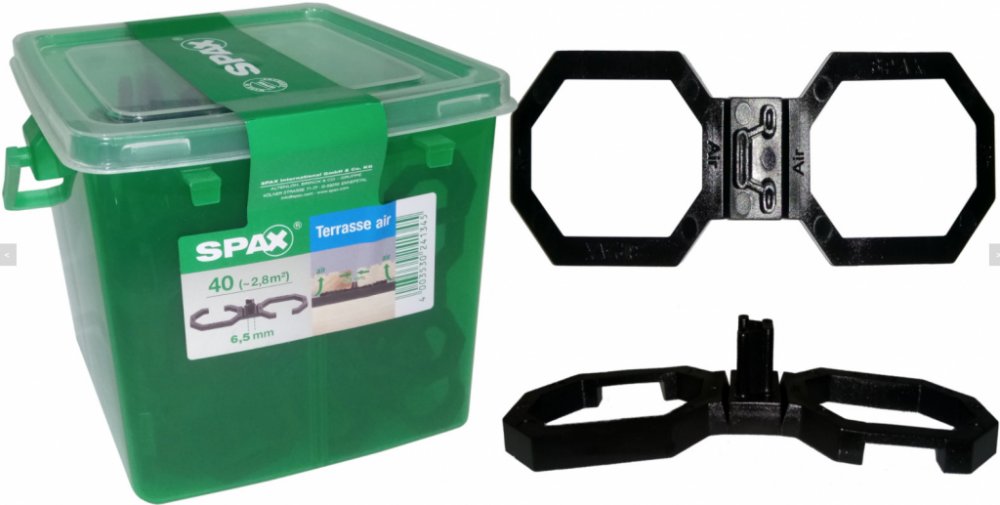 Spax AIR se používá k udržování proudění vzduchu a lepšímu větrání terasy. Vlhkost je nežádoucím jevem pro terasové konstrukce, zejména tzv. stálá vlhkost. Na takových místech dřevo trouchniví rychleji.