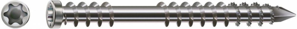 Vruty s válcovou hlavou Spax a pohonem T-Star plus lze snadno zapustit do dřeva a díky malému průměru hlavy umožňují téměř neviditelné spojení. Tyto vruty jsou obzvláště oblíbené v dřevostavbách nebo terasových aplikacích. Díky materiálu z nerezové oceli A2 jsou ideální pro exteriérové použití. Nejsou ale odolné vůči mořské vodě a kyselinám. Pohon T-Star plus Speciální pohon vrutů T-Star plus ve t...