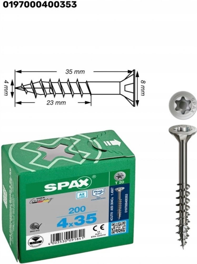 Spax Univerzální vruty do dřeva 4x35 mm 200 ks