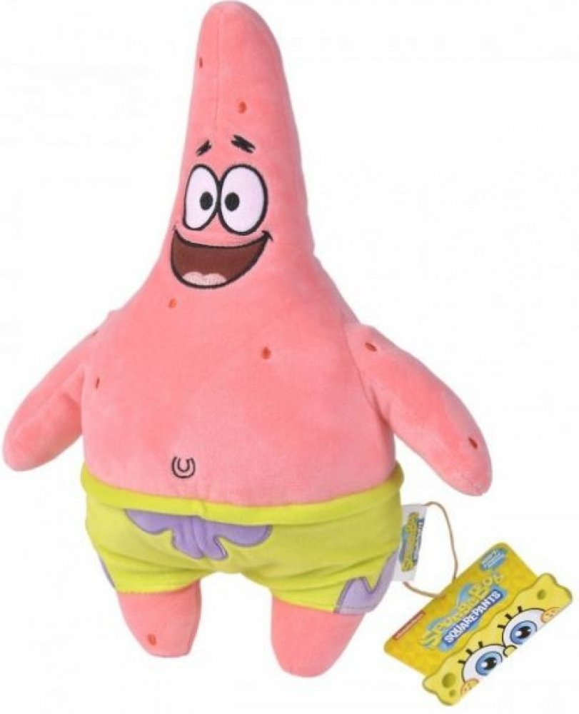 Plyšový Patrick je vyroben z příjemně měkkého plyše a je ideální na mazlení.Plyšová figurka je vyplněna 100% recyklovaným materiálem. Plyšová figurka Spongeboba, celková délka cca 35 cm, 100% polyester Velikost: 35 cm. Číslo dílu