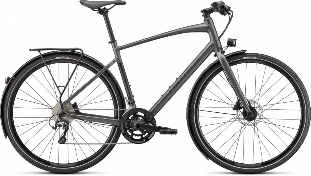 Specialized A1 Premium Aluminum, Fitness Geometry, butted tubing, internal cable routing, flat-mount disc, quick-release, Plug + Play rack/fender mounts