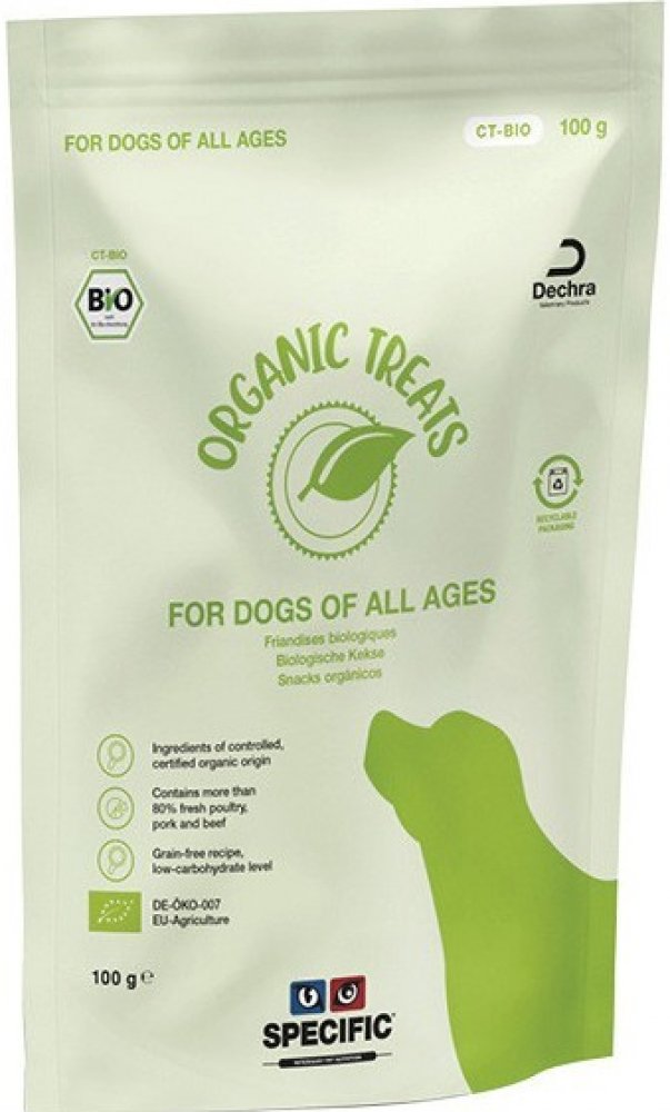Organické pamlsky SPECIFIC™ jsou certifikovány německým Prüfgesellschaft Ökologisicher Landbau, německým úřadem pro kontrolu ekologického zemědělství a produkci a jsou vyráběny v souladu s požadavky na používání EU loga pro ekologického zemědělství.