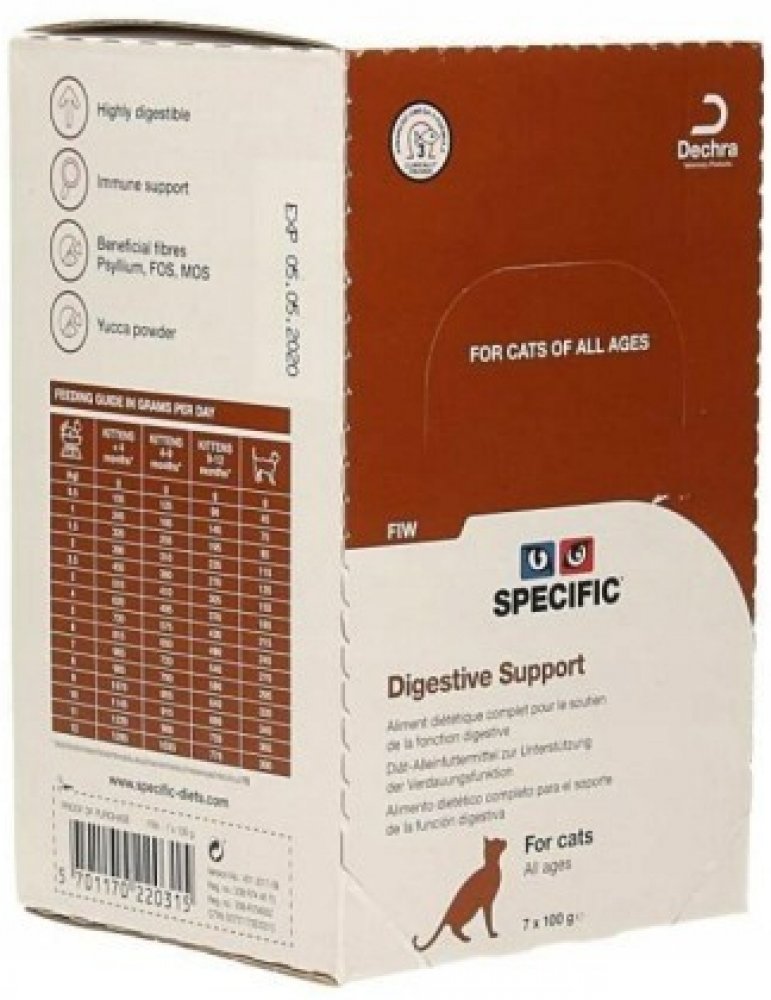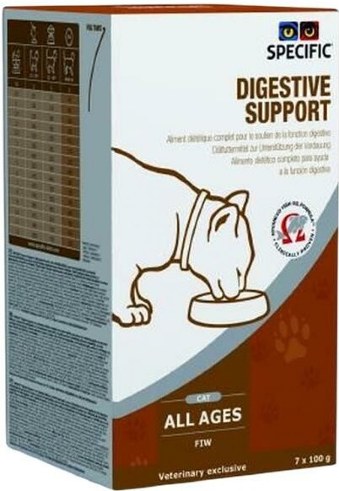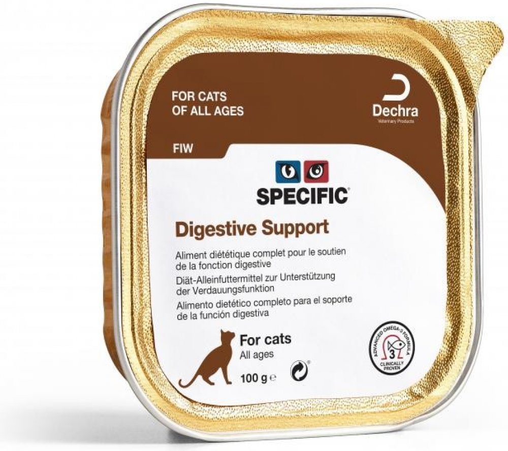 SPECIFIC™ FIW Digestive Support je kompletní, vyvážená dieta s doporučenými nutričními hladinami požadovanými pro rostoucí a dospělé kočky. Proto je tato dieta vhodná také pro koťata.