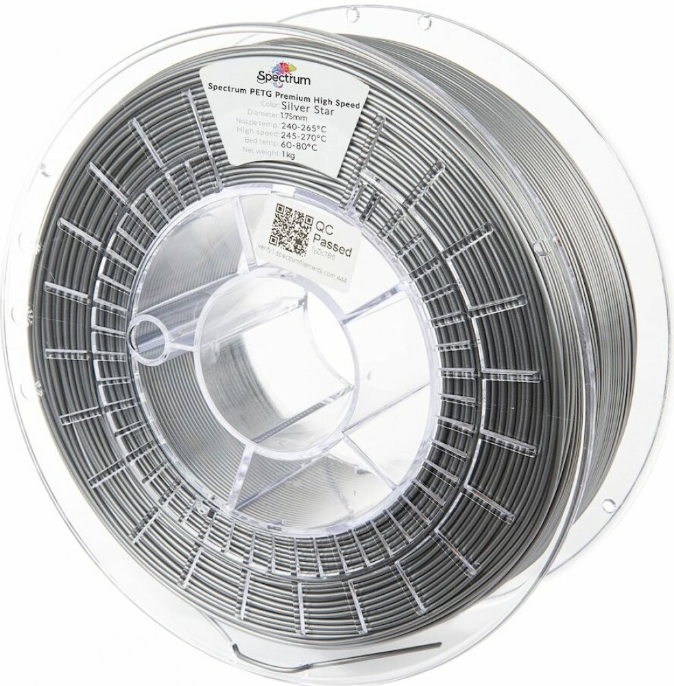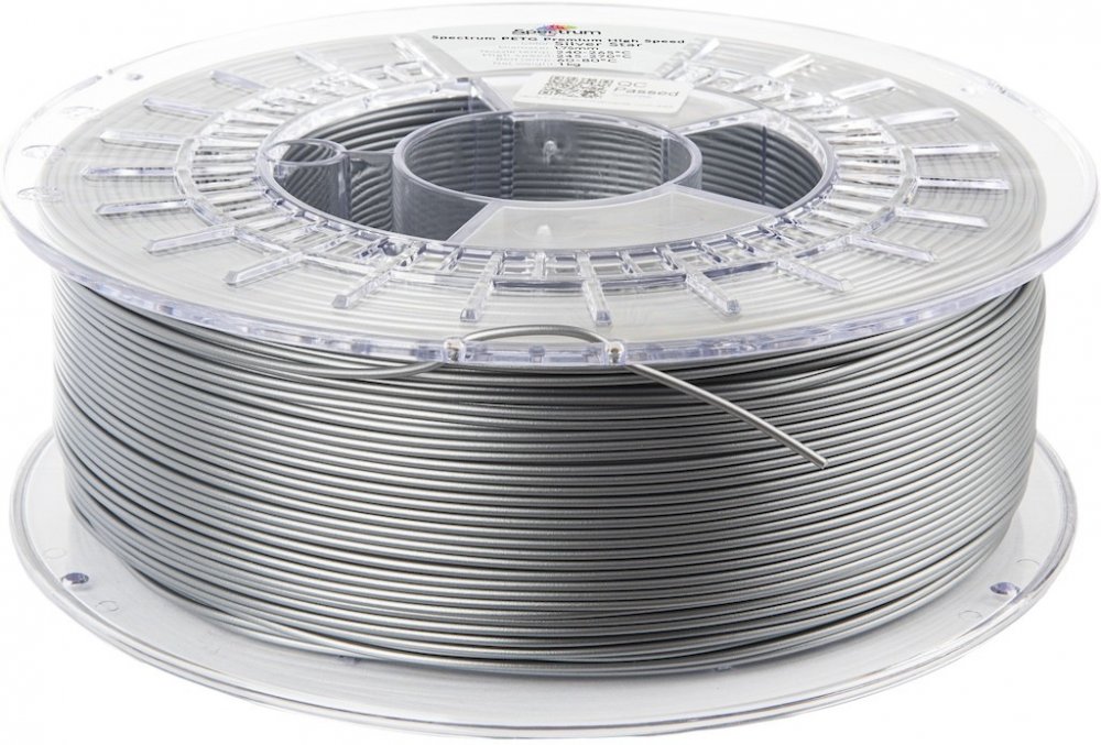 Filament Spectrum z PETG materiálu se vyznačuje vysokou odolností. Jeho barva je stříbrná. Má průměr 1,75 mm s tolerancí 0,03 mm, což odpovídá standardní přesnosti, je tedy ideální pro hobby i poloprofesionální použití a zvládne většinu běžných tiskových úkolů. Délka návinu je 322,45 m. Dosahuje optimálních výsledků při maximální teplotě trysky do 270 °C. Maximální teplota, které může podložka dos...