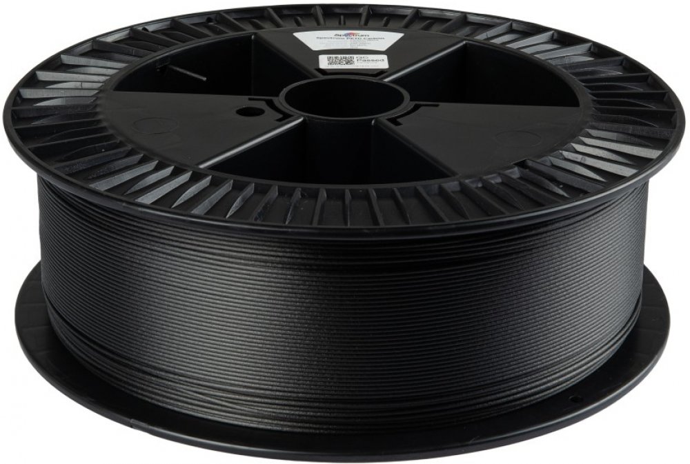 Spectrum PET-G Carbon je modifikovaný filament na bázi PET-G smíchaný s uhlíkovými vlákny, který přispívá k výrazně vyšší tuhosti, tvrdosti a odolnosti v tahu při zachování nízkého smrštění a velmi dobré přilnavosti ke stavbě platforem typických pro čistý PET-G. 10% přídavek uhlíkových vláken umožňuje získat matné povrchy tiskovin, což výrazně zlepšuje estetické vlastnosti tiskovin.