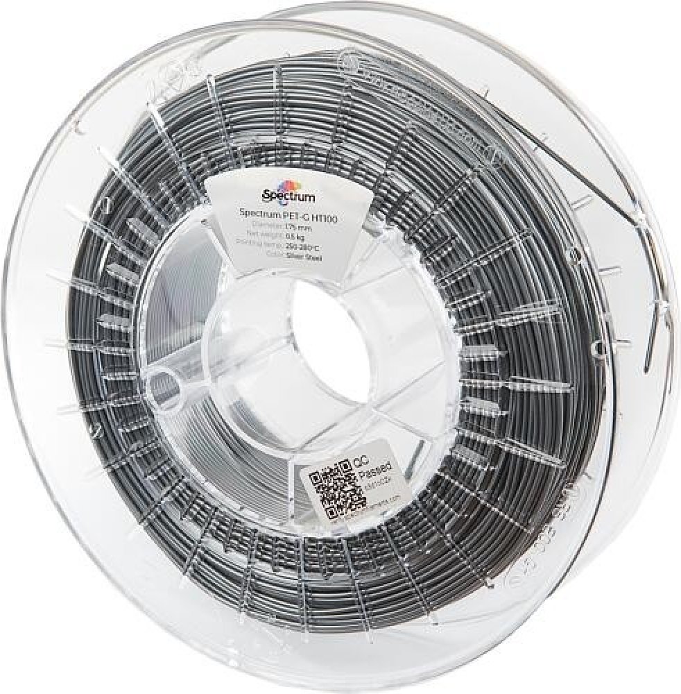 Filament Spectrum je zhotoven z PETG materiálu, který je vysoce odolný. Jeho barva je stříbrná. Má průměr 1,75 mm s tolerancí 0,03 mm, což odpovídá standardní přesnosti pro nároky hobby a poloprofesionálního použití, je tedy vhodný pro většinu tiskových aplikací. Délka návinu činí 176,26 m. Nejlepších výsledků dosahuje při maximální teplotě trysky do 280 °C. Maximální teplota, které může podložka ...