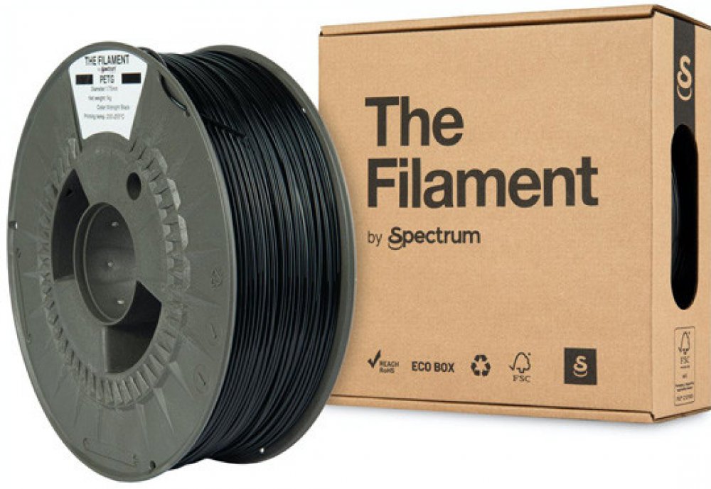 Filament Spectrum z PETG materiálu je charakteristický vysokou odolností. Jeho barva je černá. Má průměr 1,75 mm s tolerancí 0,03 mm, což odpovídá standardní přesnosti pro hobby i poloprofesionální použití, zvládne tedy většinu běžných tiskových úkolů. Délka návinu činí 32,753 m. Dosahuje nejlepších výsledků při maximální teplotě trysky do 255 °C. Maximální teplota, které může podložka dosahovat, ...