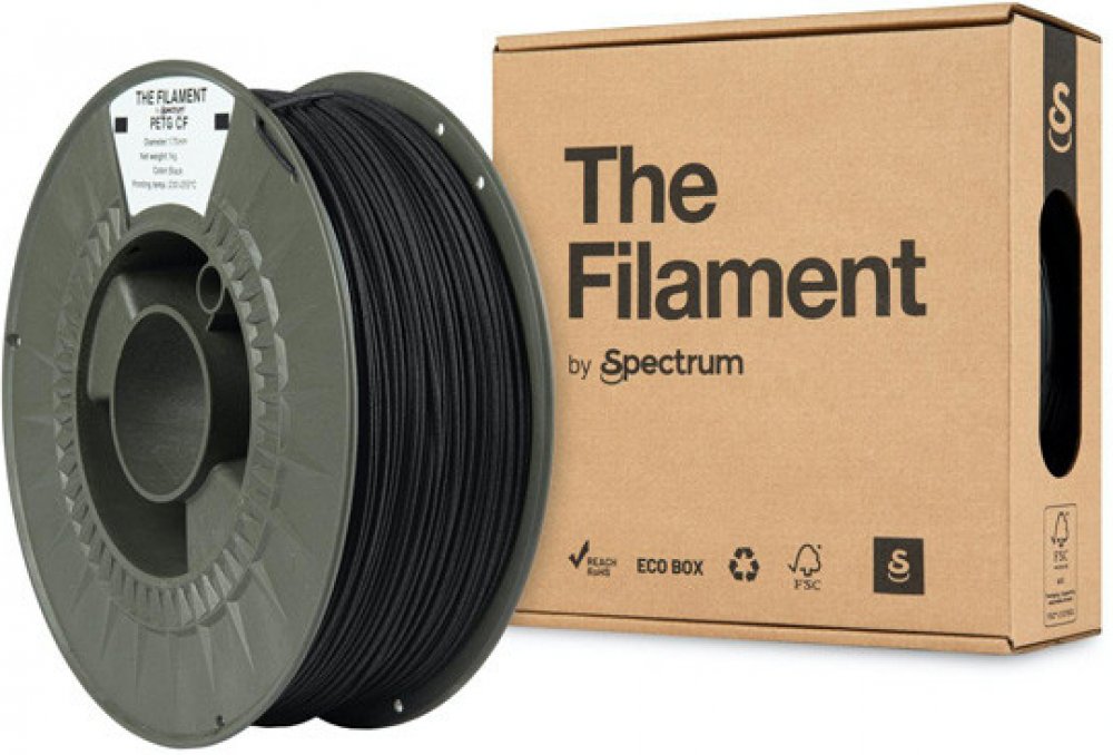 Filament Spectrum je zhotoven z PETG materiálu, který je vysoce odolný. Jeho barva je černá. Má průměr 1,75 mm s tolerancí 0,03 mm, což odpovídá standardní přesnosti, je tedy dostačující pro hobby i poloprofesionální tisk a pokryje většinu běžných tiskových projektů. Délka návinu je 32,212 m. Nejvyšší kvality tisku dosáhnete při maximální teplotě trysky do 255 °C. Maximální teplota, které může podložka dosahovat, je 75 °C. Je charakteristický nízkou pružností, která zajišťuje, že odolá lehkým ohybům, aniž by došlo k trvalé deformaci. Ideální rychlost tisku je v rozmezí 40 až 200 mm/s. Klíčové vlastnosti produktu The Filament PETG CF 1.75mm Black 1kg Filament Spectrum je vyroben z PETG materiálu Černá barva Průměr 1,75 mm s tolerancí 0,03 mm Délka návinu 32,212 m Ideální pro tisk při maximální teplotě trysky do 255 °C Doporučen pro tisk při max. teplotě podložky 75 °C Je charakteristický nízkou mírou pružnosti Rychlost tisku se doporučuje mezi 40 a 200 mm/s Doporučená podložka: texturovaná, saténová a PEI...