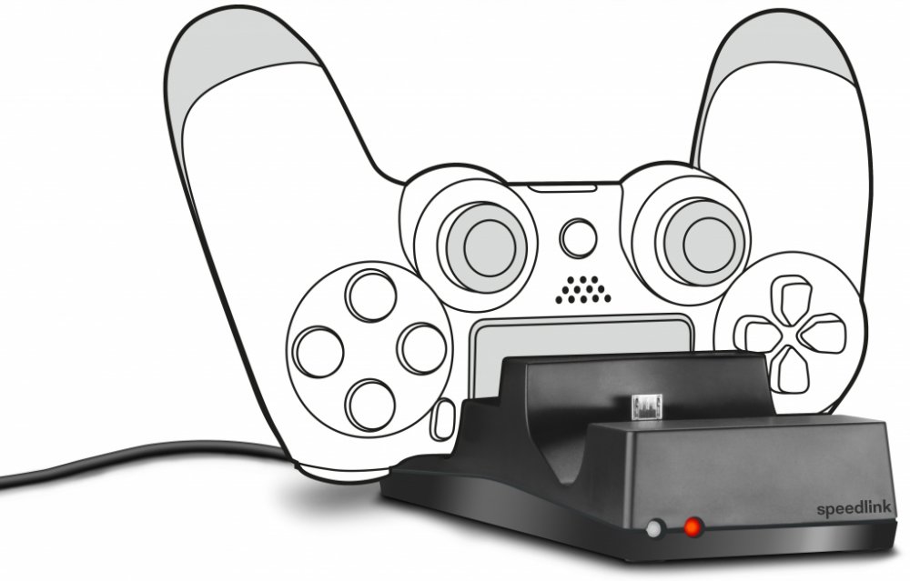 Nabíjecí stanice pro původní herní ovladače PS4®, Stabilní postavení, Kompaktní design, Pohodlný systém pro připojení, Nabíjejte přes konzoli nebo libovolný port USB, Současně nabíjejte až dva ovladače DUALSHOCK®4, Praktické LED indikátory stavu
