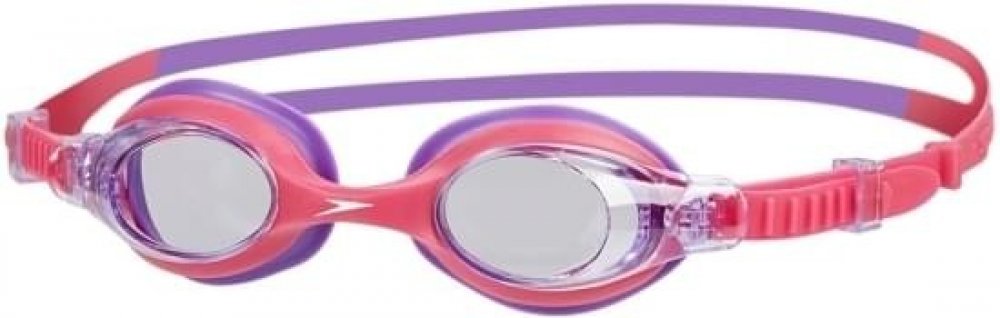 Dětské růžové plavecké brýle Speedo Skoogle Infant s fialovými detaily jsou určené malým plavkyním ve věku od 2 do 6 let. Brýle mají silikonové těsnění v různých barevných variantách, které se dobře přizpůsobí obličeji. Očnice jsou vyrobeny z polycarbonátu a jsou čiré, což se hodí hlavně pro vnitřní plavání. Brýle mají rozdvojený silikonový pásek, který je nastavitelný pomocí klipů na stranách brýlí. Silikonový nosník se dobře přizpůsobí tvaru nosu. Očnice plaveckých brýlí Speedo Skoogle jsou opatřeny UV filtrem a antifogovou vrstvou.