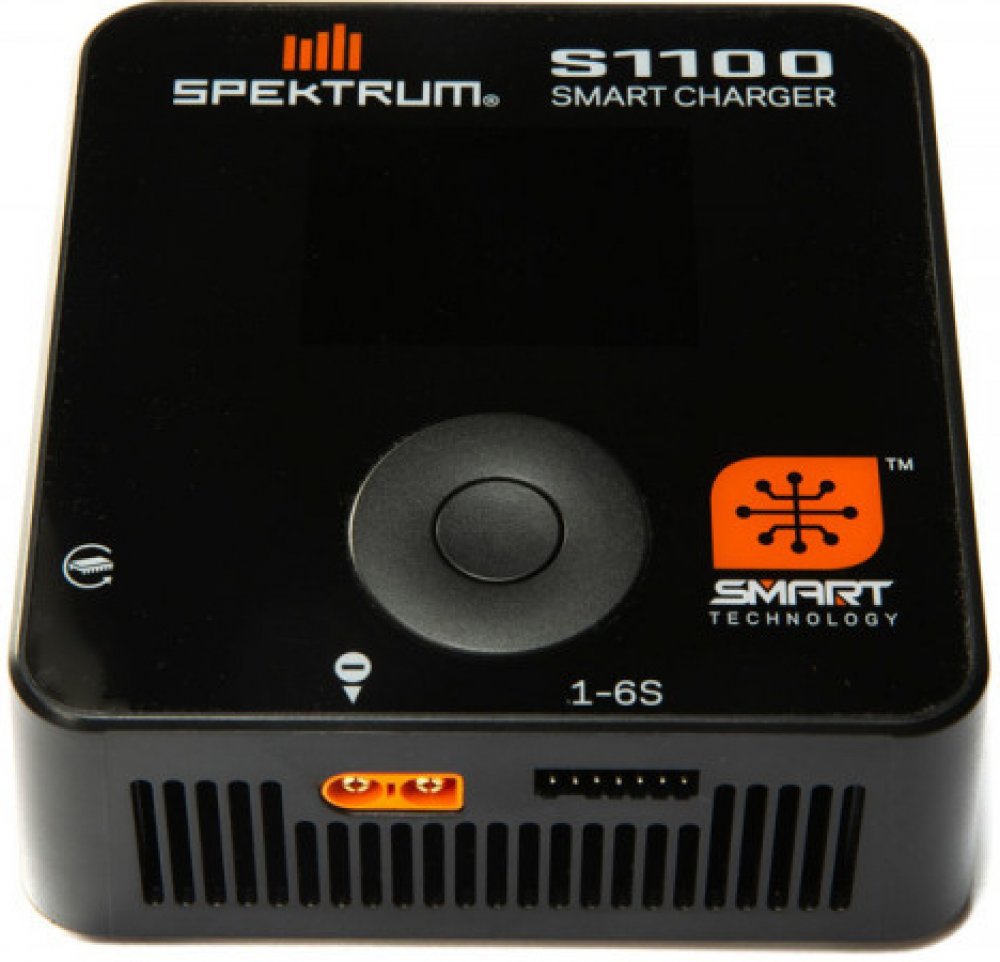 Inteligentní nabíječ Spektrum ™ S1100 AC s integrovaným síťovým zdrojem v malém, kompaktním a elegantním provedení. Umožňuje nabíjení prakticky jakékoli baterie snazší, rychlejší a bezpečnější cestou než kdykoli předtím. Kromě toho, že je S1100 kompatibilní s řadou baterií Spektrum Smart (využití funkcí Smart), podporuje také nabíjení všech oblíbených typů baterií včetně LiFe, LiIon, LiPo, LiHV, NiMH, NiCd a Pb. Nabíječ poskytuje veškeré údaje na přehledném grafickém displeji. Snadné a intuitivní ovládání pomocí dotykových tlačítek.