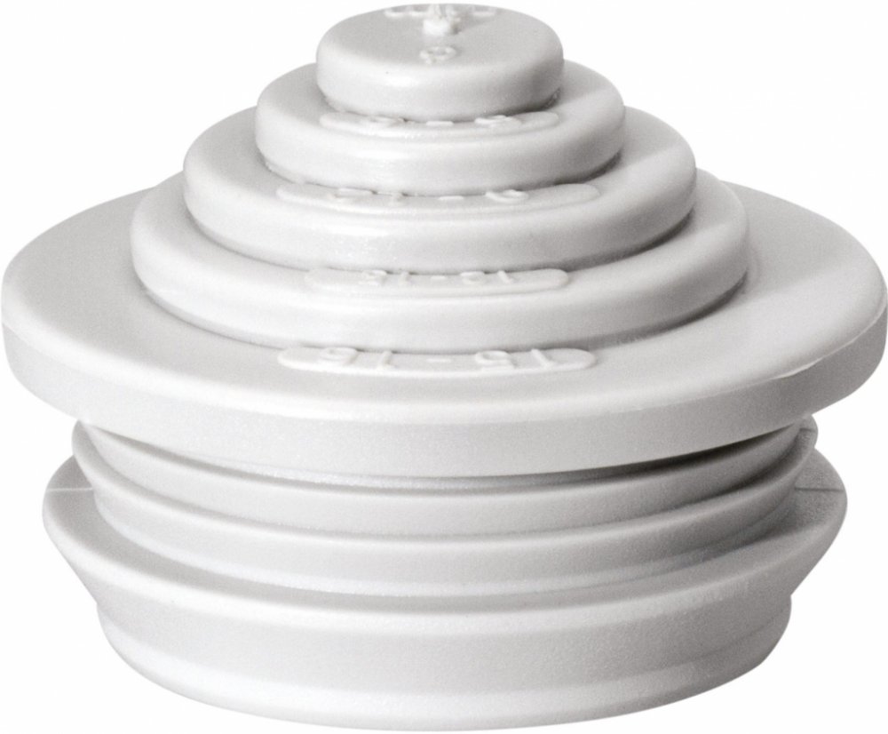 Stupňovitá vývodka, IP55, s uzavřenou těsnicí membránou, odříznutelná ve více stupních, termoplastický elastomer (TPE), pro tloušťky stěny 1,5-4mm, šedá, Rozsah těsnění 5-21mm