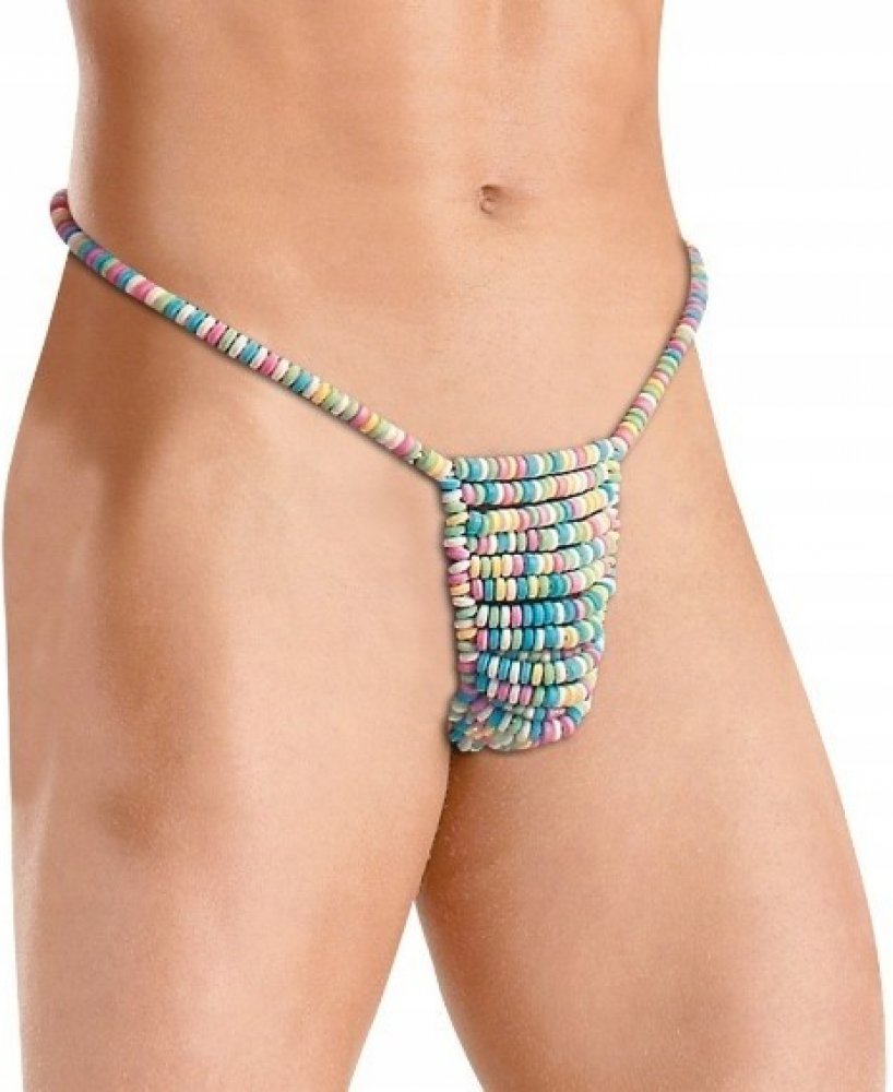 Pánská tanga vyrobená z populárních cukroví kuliček na pružných pryžových popruzích. Pro zaručeně sladké intimní chvíle! Snězte svou lásku!