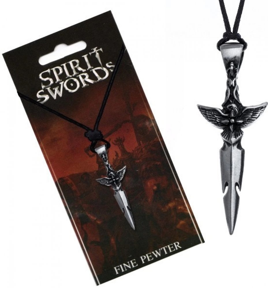 Šperky eshop Černý stříbřitý meč pták na rukojeti šňůrka Y53.05