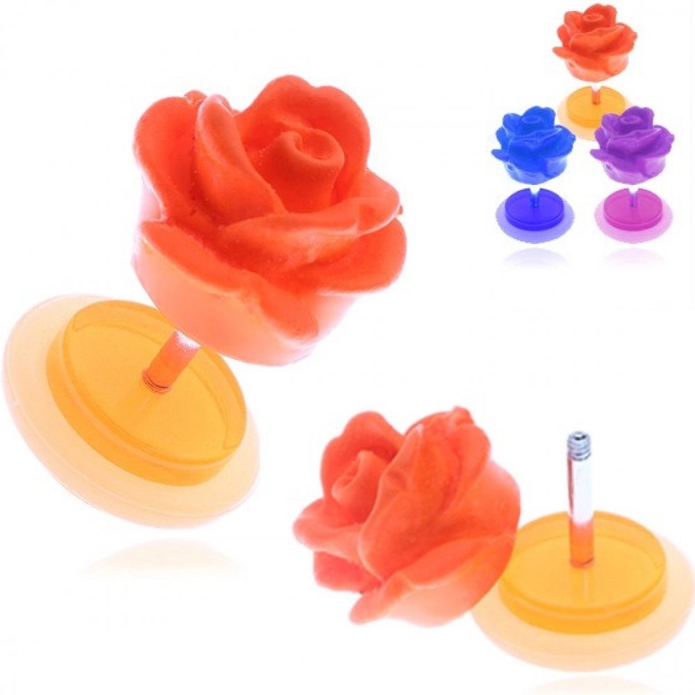 Šperky eshop falešný akrylový piercing do ucha matná barevná růže PC32.19 modrá