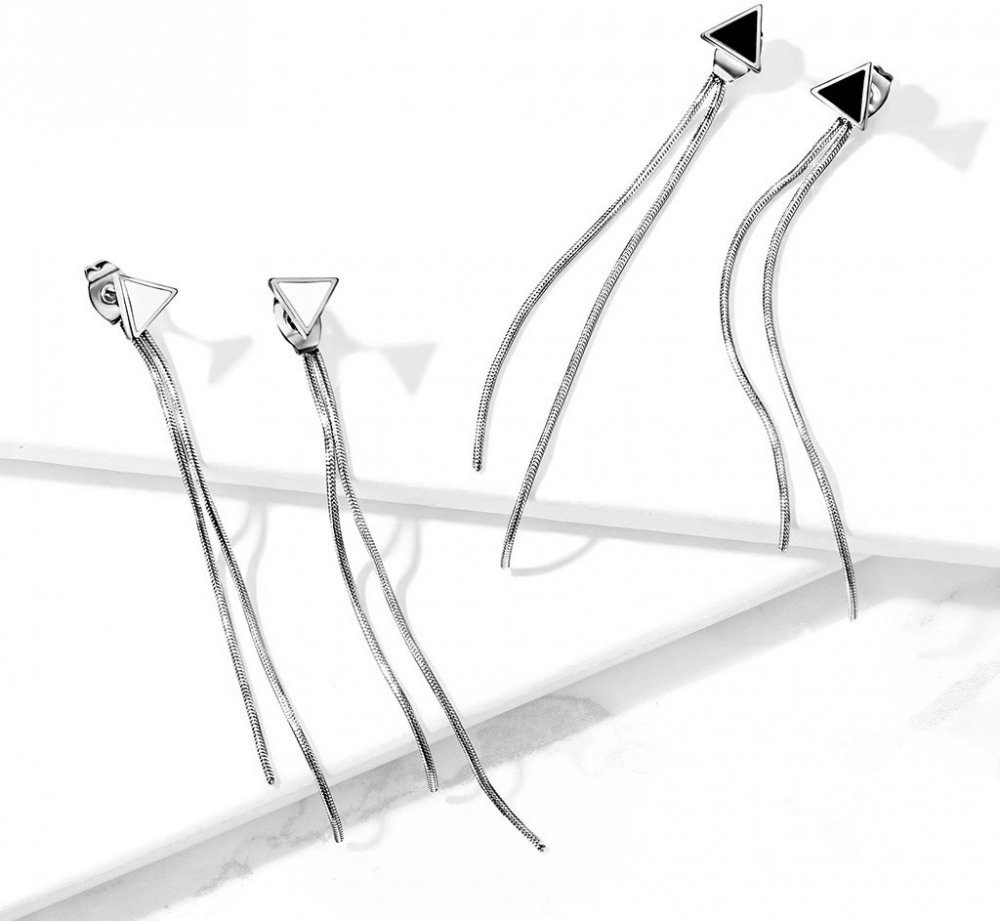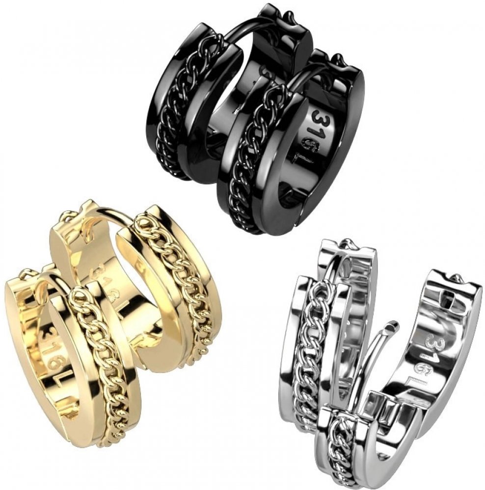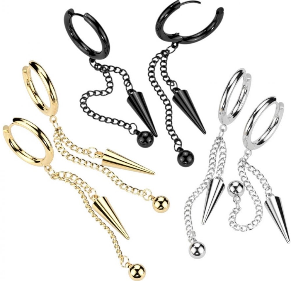 Šperky eshop Kulaté náušnice z oceli řetízek s kuželem a kuličkou PVD V07.14 Černá