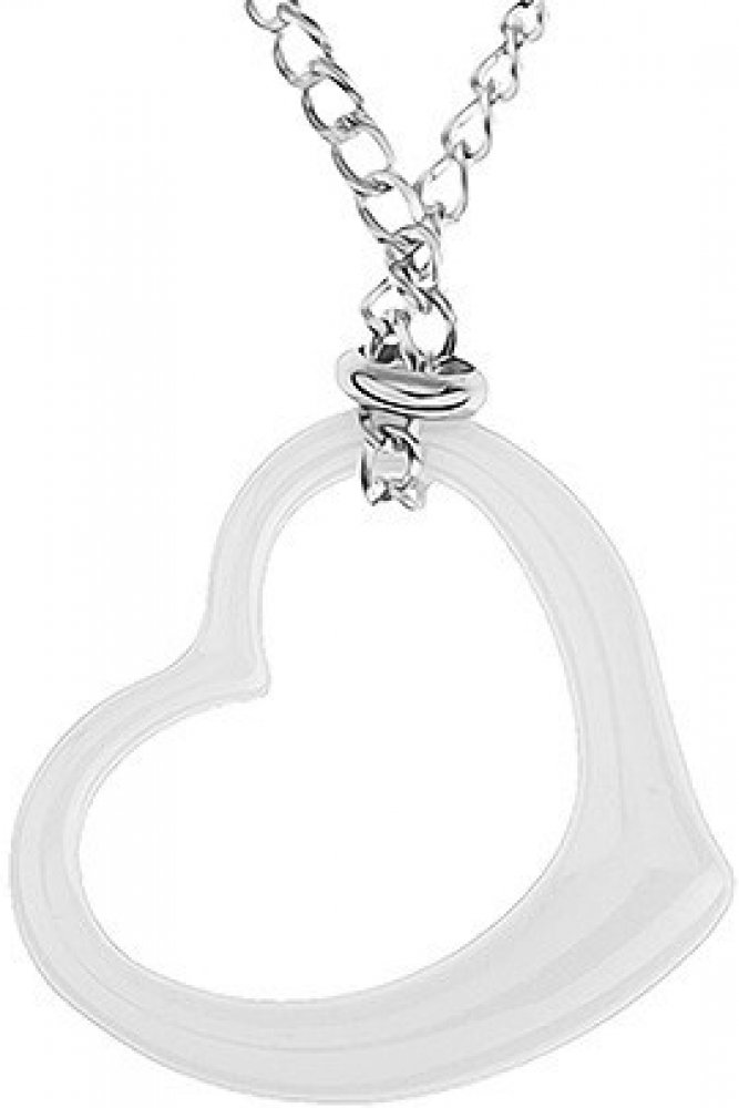 Šperky eshop Ocelový stříbrné barvy obrys bílého keramického srdce SP36.30