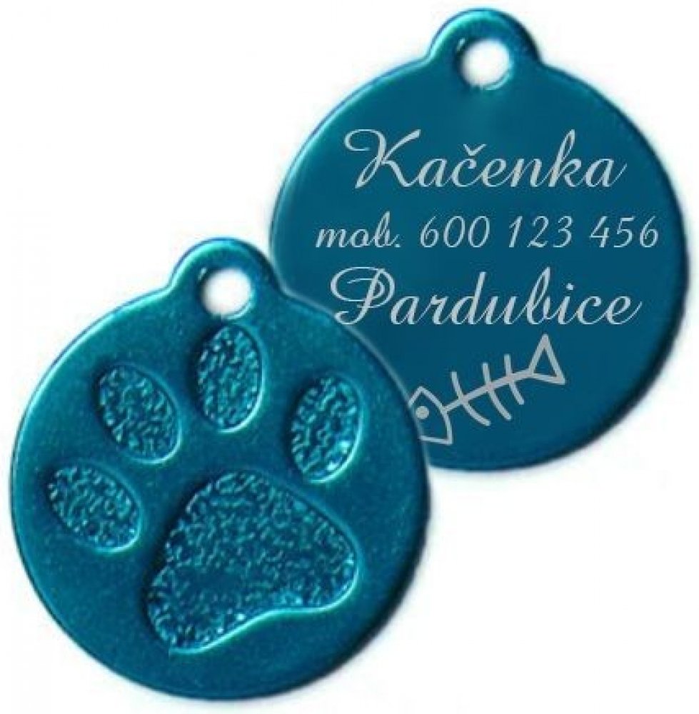 Hliníková identifikační psí známka s vyraženou psí tlapičkou
