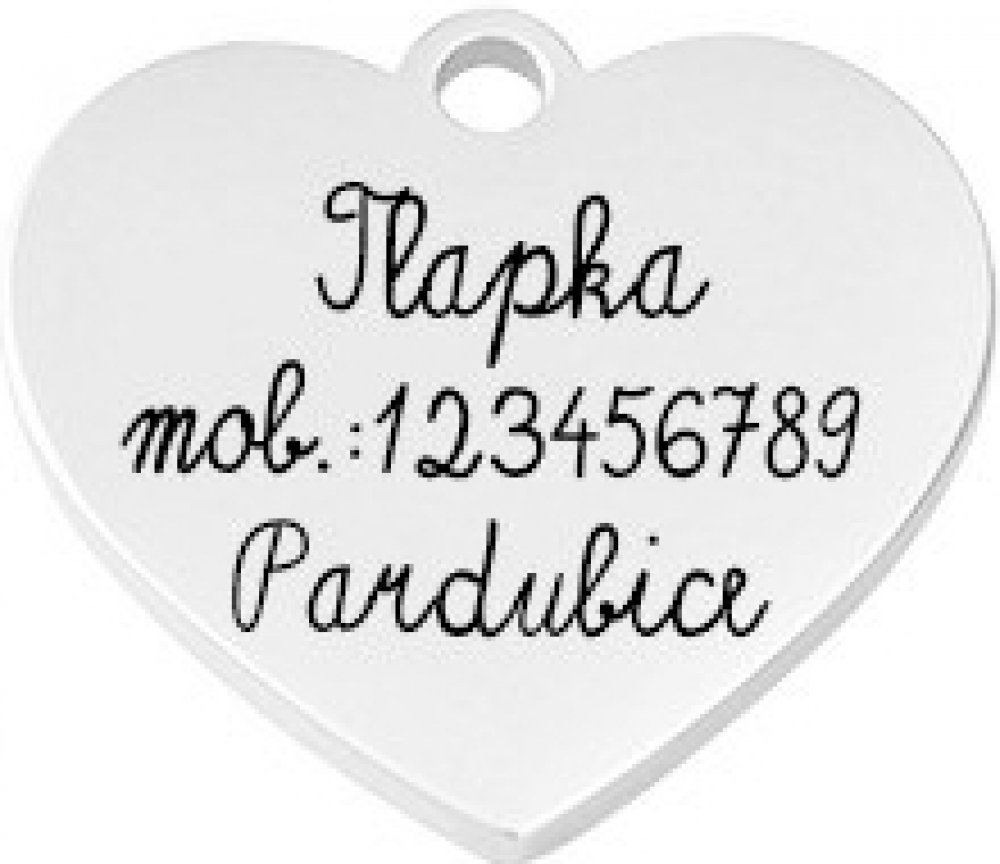 Ocelová destička - psí/kočičí známka ve tvaru srdíčka