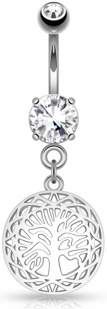 Piercingový šperk určený pro piercing pupíku. S ozdobou stromu života z kvalitní bižuterie.Tyčka a kulička piercingu jsou vyrobeny z chirurgické oceli s jakostním označením 316L. Tento druh oceli nekoroduje (piercing nerezaví a nečerná), je antialergenní a splňuje velmi náročné parametry pro šperky přicházející do styku s pokožkou. Finální úpravou je leštění, které odstraní z piercingu veškeré ner...