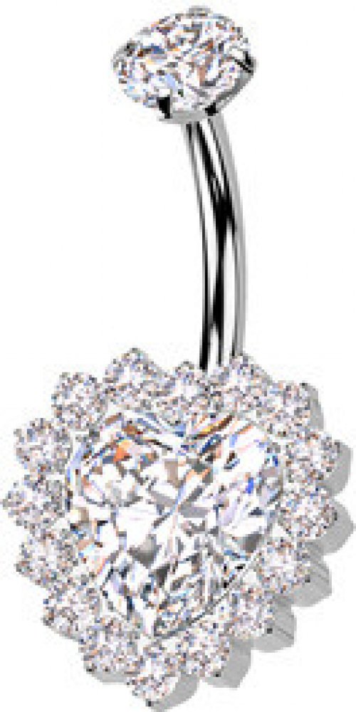 Titanový piercing do pupíku s ozdobnou částí v podobě srdíčka