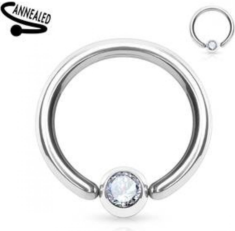 Ocelový piercing - kroužek s kuličkou se zirkonem.Kulička piercingu je na jedné straně kruhu na pevno připevněna aby nedošlo k její ztrátě.Piercing je vyroben z kvalitní chirurgické oceli s označením 316L.