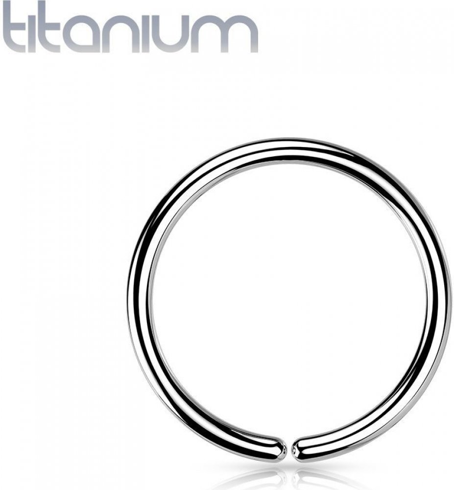 Kruh je vyroben z titania G23 (Ti-6AL4V-ELi ASTM F-136)Piercing z titanu je ideální pro první aplikaci do čerstvě píchnuté piercingové dírky nebo pro osoby se zvýšenou citlivostí na kovy