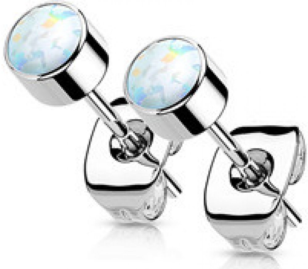 Šperky4U Titanové náušnice s bílým opálem KM2020-03