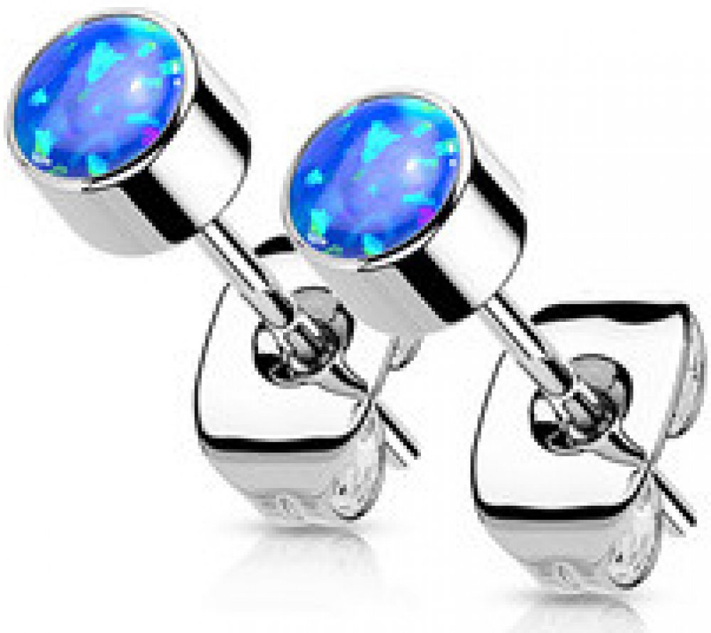 Titanové náušnice dekorované syntetickým opálem modré barvy