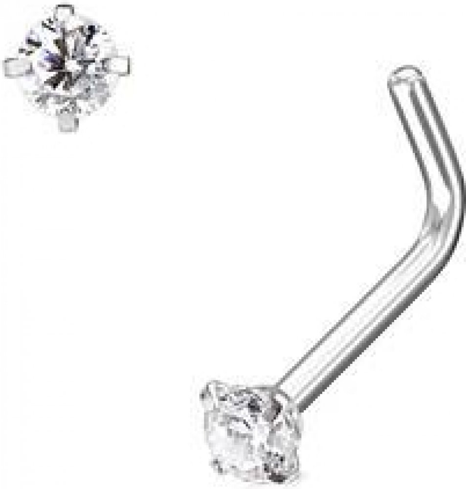 Šperky4U zahnutý piercing do nosu čirý kamínek N0170-02