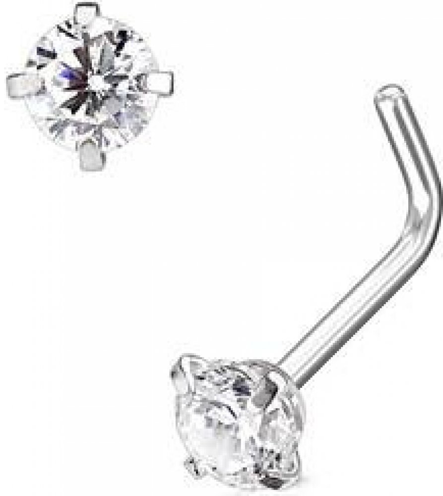 Šperky4U zahnutý piercing do nosu čirý kamínek N0170-03