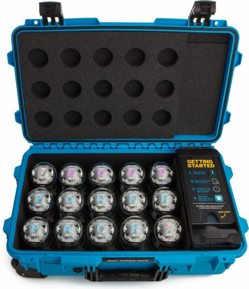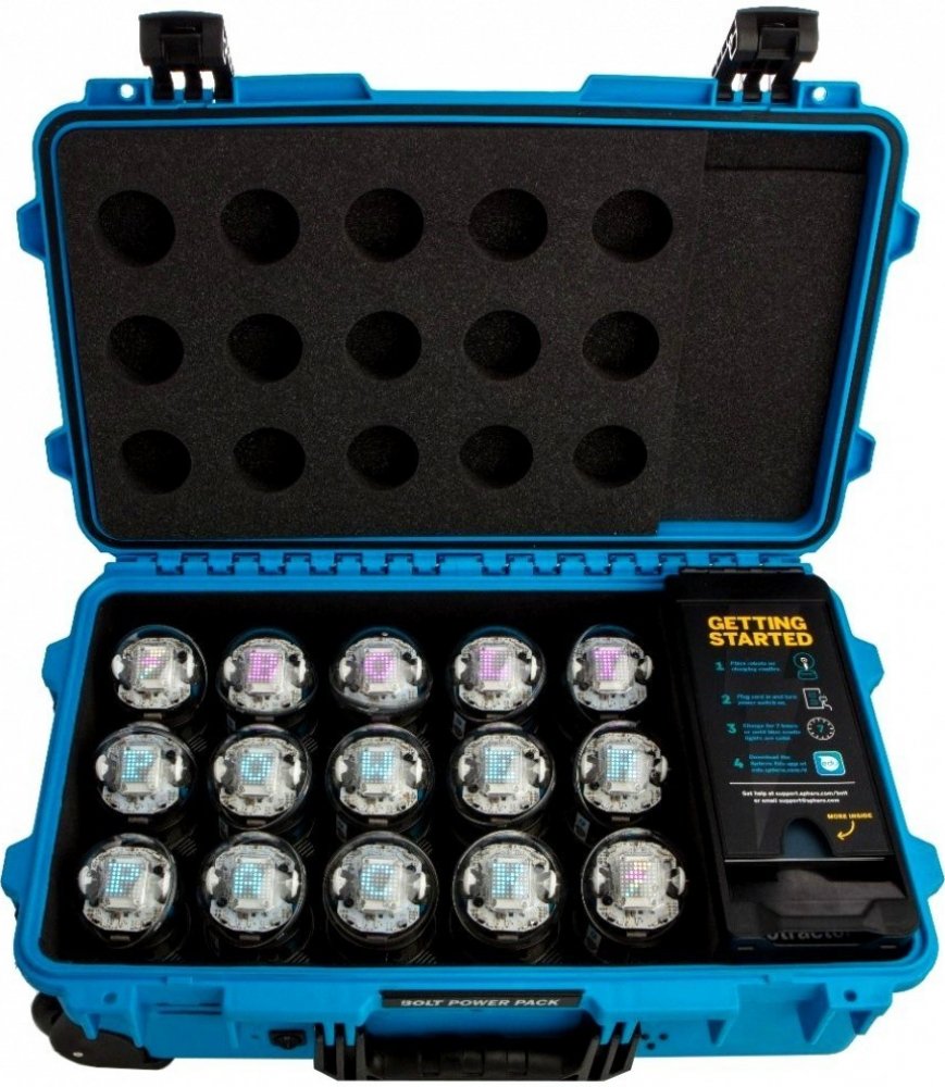 Sphero BOLT Power Pack představuje sadu 15 programovatelných koulí včetně prostorného dobíjecího kufru s množstvím výukového příslušenství. Kufr využijete nejen k přepravě, ale také k nabíjení výukového setu prostřednictvím indukčních nabíjecích základen. Díky vestavěnému chladícímu systému můžete bezpečně nabíjet až 15 robotických koulí zároveň.