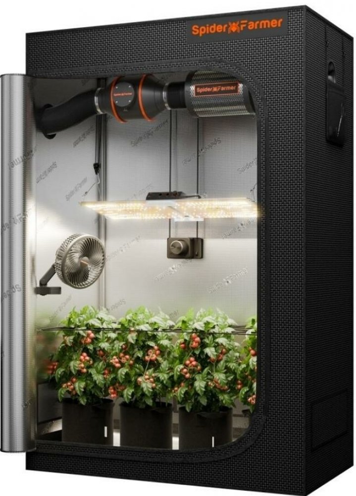 - 1 × 120x60x180 Grow Stan: Tento stan Spider Farmer má pevný rám stanu a vnější textilní kryt, což usnadňuje nastavení a řízení prostředí a osvětlení, a zároveň poskytuje trochu soukromí.