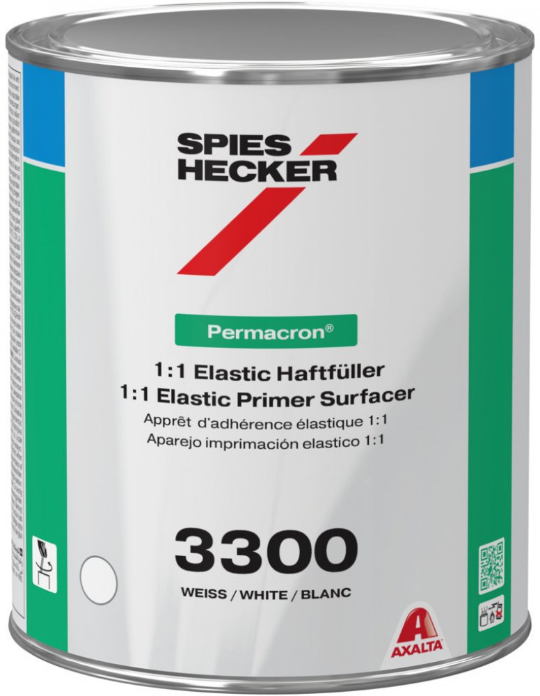 Elastický základový plnič Permacron 1:1 3300 je vysoce kvalitní 2K plnič vhodný pro všechny běžné vnější plastové díly vozidel.