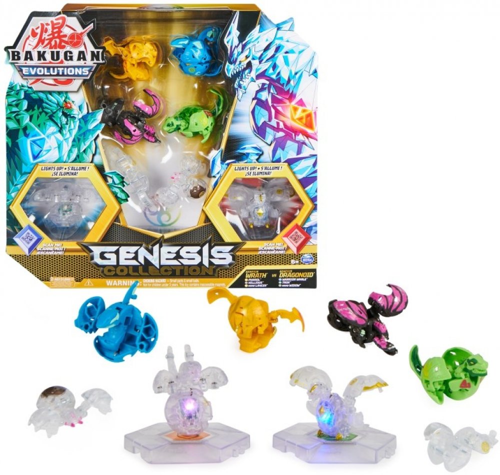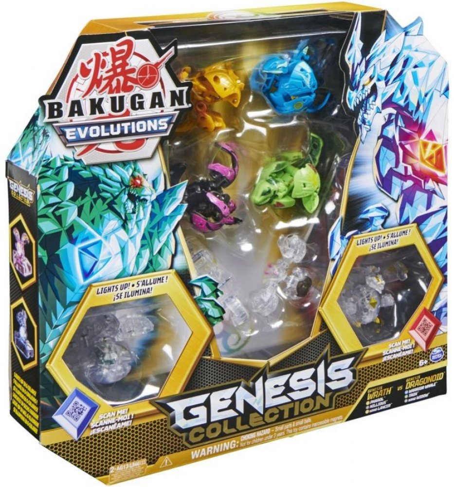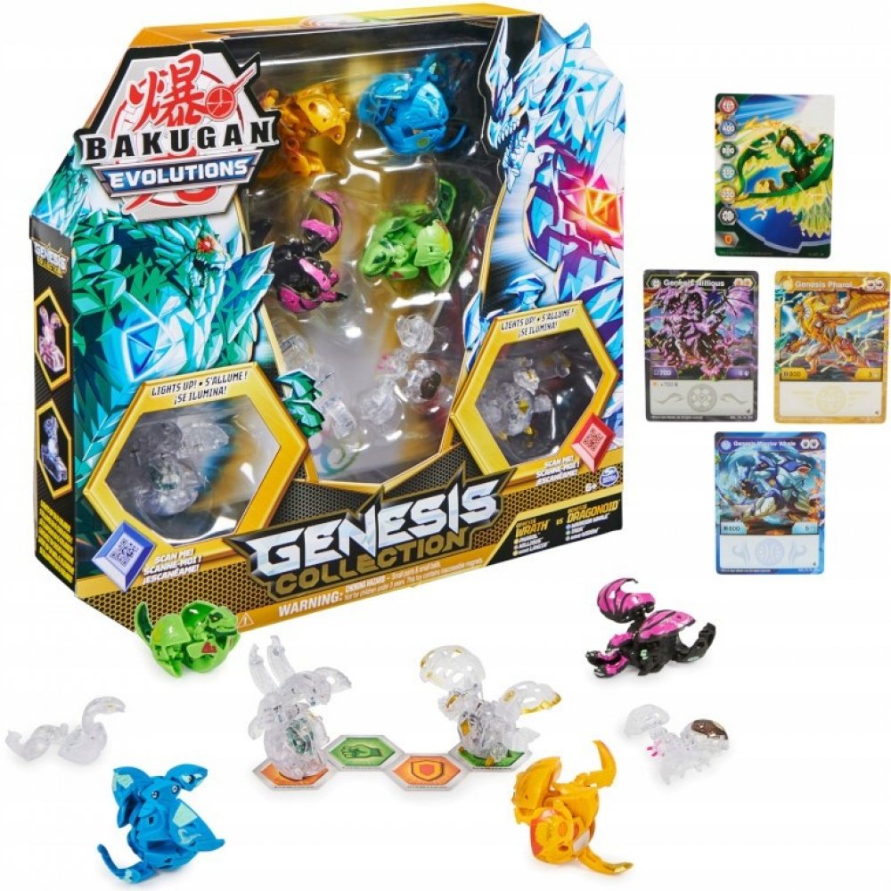 Obsahuje: 2 Exkluzivní Light Up Bakugany, 4 Exkluzivní základní Bakugany, 2 Exkluzivní Nanogany, 6 karet postav, 2 karty schopností, 2 Gate karty, 12 BakuCore žetonů